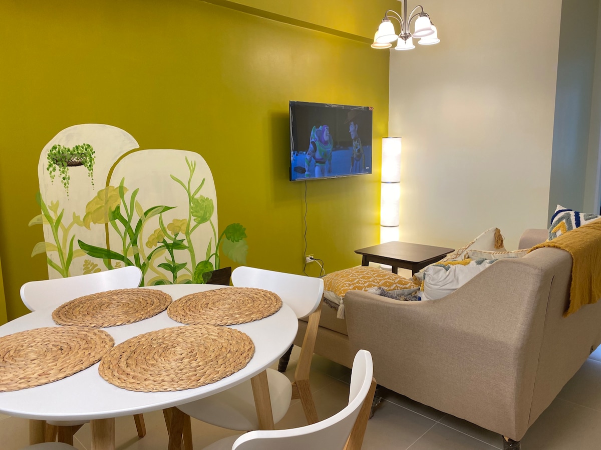 Diese stilvolle Unterkunft eignet sich perfekt für Gruppenreisen. Bietet Platz für 5 Personen. Voll möbliert mit 2 Fernsehern mit Netflix, Prime TV, ViU und Disney Channel. Mit Waschmaschine, alle Zimmer und Wohnzimmer mit Klimaanlage. Mit WLAN Es ist eine Eigentumswohnung im Resort-Stil. Mit 4 Swimmingpools. Haustierfreundliche Gemeinschaft. Ein 5-minütiger Spaziergang zur Estancia Mall, in der Nähe von SM Megamall, Ayala Malls, St. Paul Pasig City, 10 Minuten Fahrt nach BGC und Makati