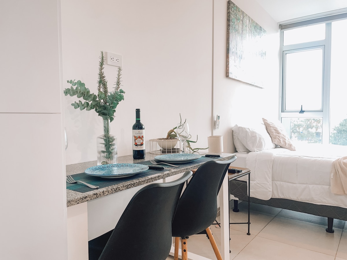 Entspannen Sie sich und genießen Sie ein Erlebnis im Japandi-Stil. Hören Sie den Vögeln zu und betrachten Sie die Berge bei Sonnenaufgang, erleben Sie die schönsten Sonnenuntergänge und eine unglaubliche Aussicht bei Nacht, alles von unserem Balkon aus! Das Hotel liegt in einem neuen und luxuriösen Turm mit modernen Annehmlichkeiten, nur 10 Minuten von Theatern, Museen und emblematischen Parks der Hauptstadt entfernt. Du kannst auch zu Fuß oder mit dem Fahrrad zum La Sabana Park oder zum Nationalstadion gehen. Mit einfachem Zugang zur Autobahn, die Sie in 25 Minuten zum Flughafen bringt