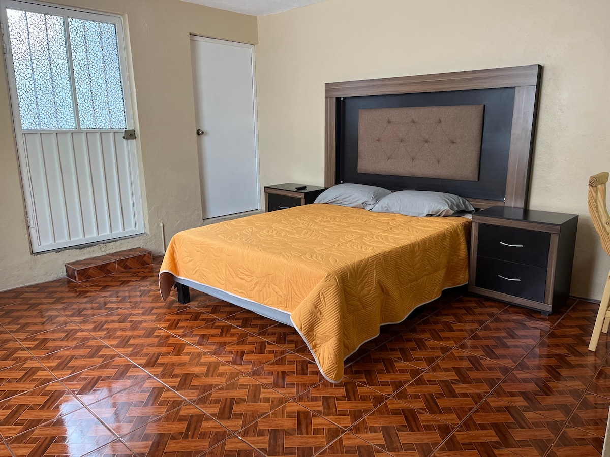 Genieße die Einfachheit dieser ruhigen und zentralen Unterkunft nur wenige Schritte vom Zentrum von Tequisquiapan entfernt. Die Mini-Depa ist in einem Einzelzimmer (Studiotyp) mit Küchenzeile, Mini-Refri, Badezimmer mit Dusche, Schlafsofa und Doppelbett verteilt. Mit Übernachtungskapazität für bis zu vier Personen. Tequisquiapan ist ein magisches Dorf, in dem du eine Reihe von Aktivitäten findest, um Weintourismus und Wellness-Tourismus zu entdecken, der international anerkannt ist.