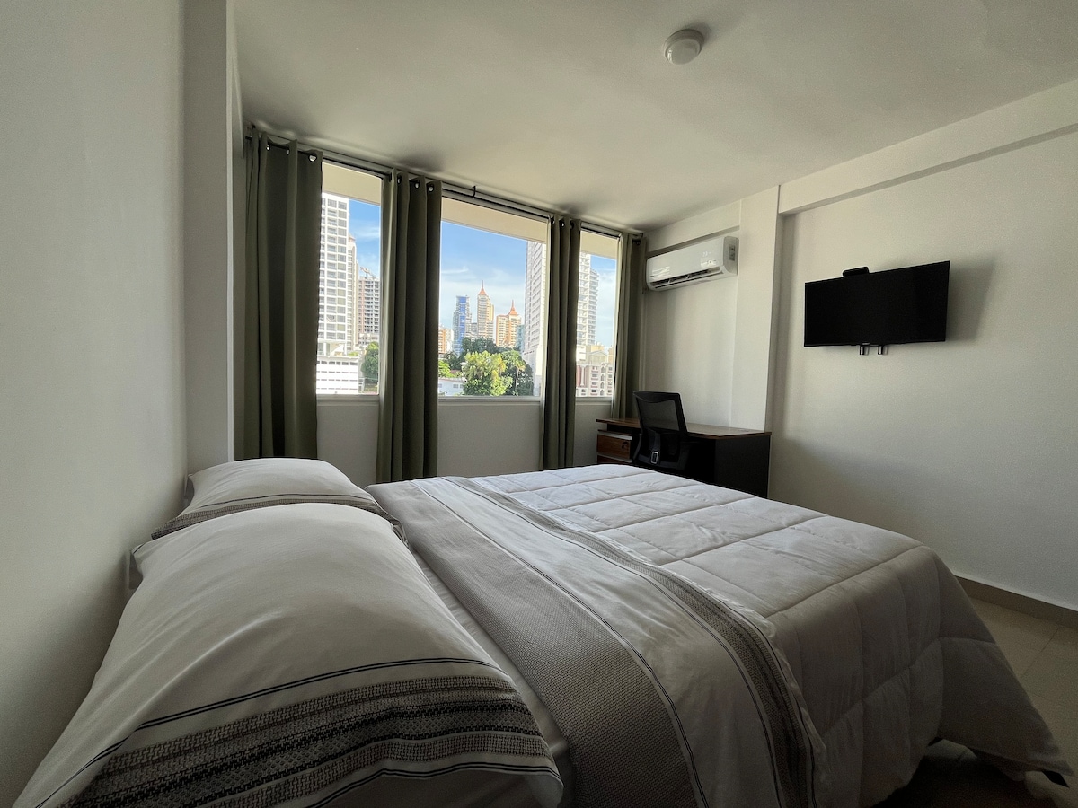 Komfort, Lage und Ruhe in einer neuen Unterkunft, im Finanzzentrum von Panama, in der Nähe der Calle 50 und des emblematischen El Tornillo-Gebäudes. Alle modernen Annehmlichkeiten, in der Nähe von Hotels, Casinos, Restaurants und mit einem absolut sicheren Bereich zum Wandern. Swimmingpool und Fitnessraum in der obersten Etage mit spektakulärem Blick auf die Stadt. Einfacher Zugang: Vom Flughafen Metro oder Landterminal aus erreichst du die Station Via Argentina, die 400 Meter von der Wohnung entfernt ist.
