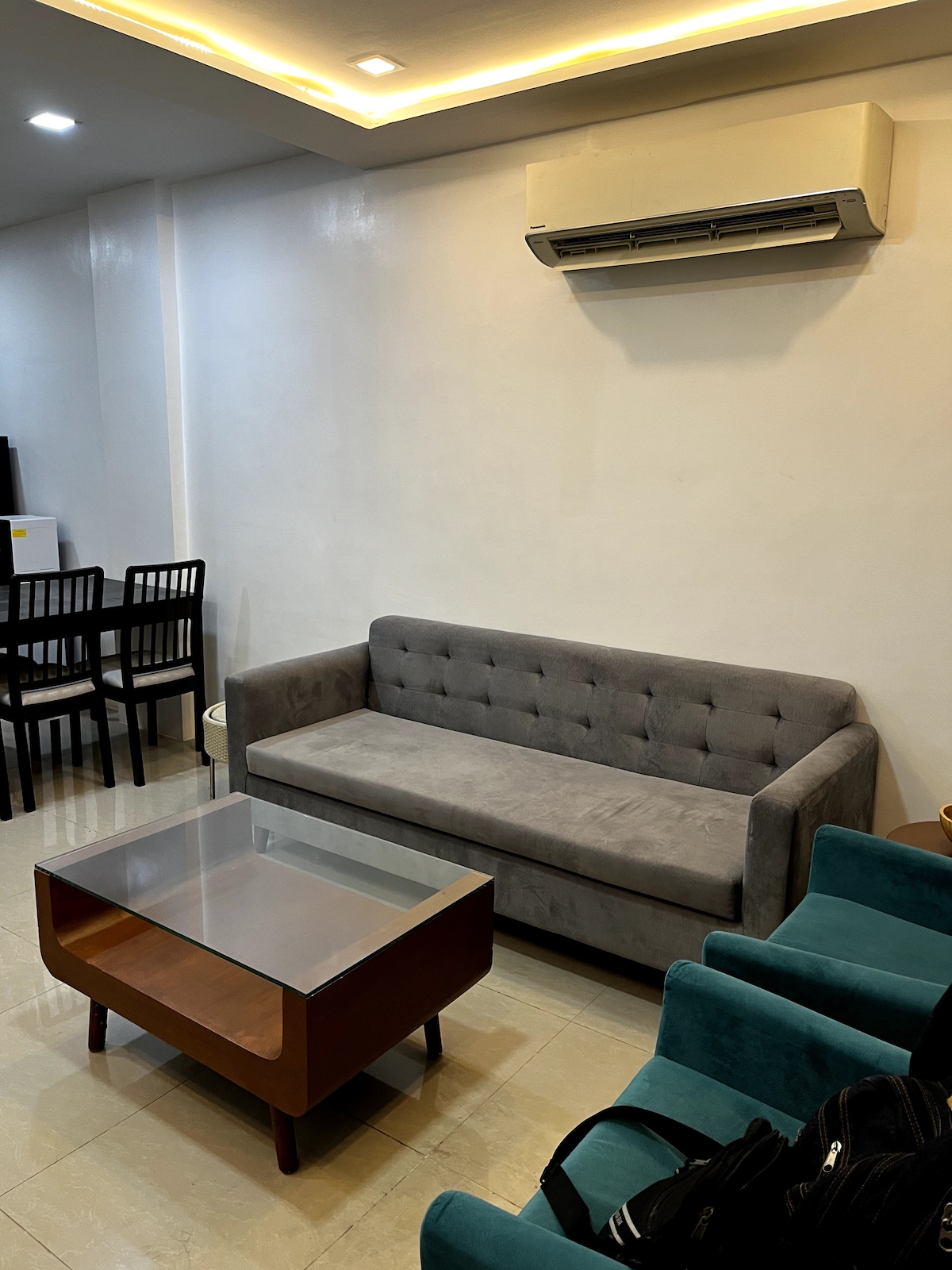 Enjoy our luxury home concept that connects all the guests in an incredible way. The functionality of the kitchen, dining, bedrooms among others is extremely gracious and fully air conditioned. The cinematic hotel experience with videoke in a staycation right in the heart of Makati. Chill and relax in a fully furnished master suite with Lazy boy and en suit jacuzzi! SUPER CONVENIENT! Bowling, billiards, massages, an authentic Korean sauna, resto bar and lively karaoke—all within a 3-min walk!