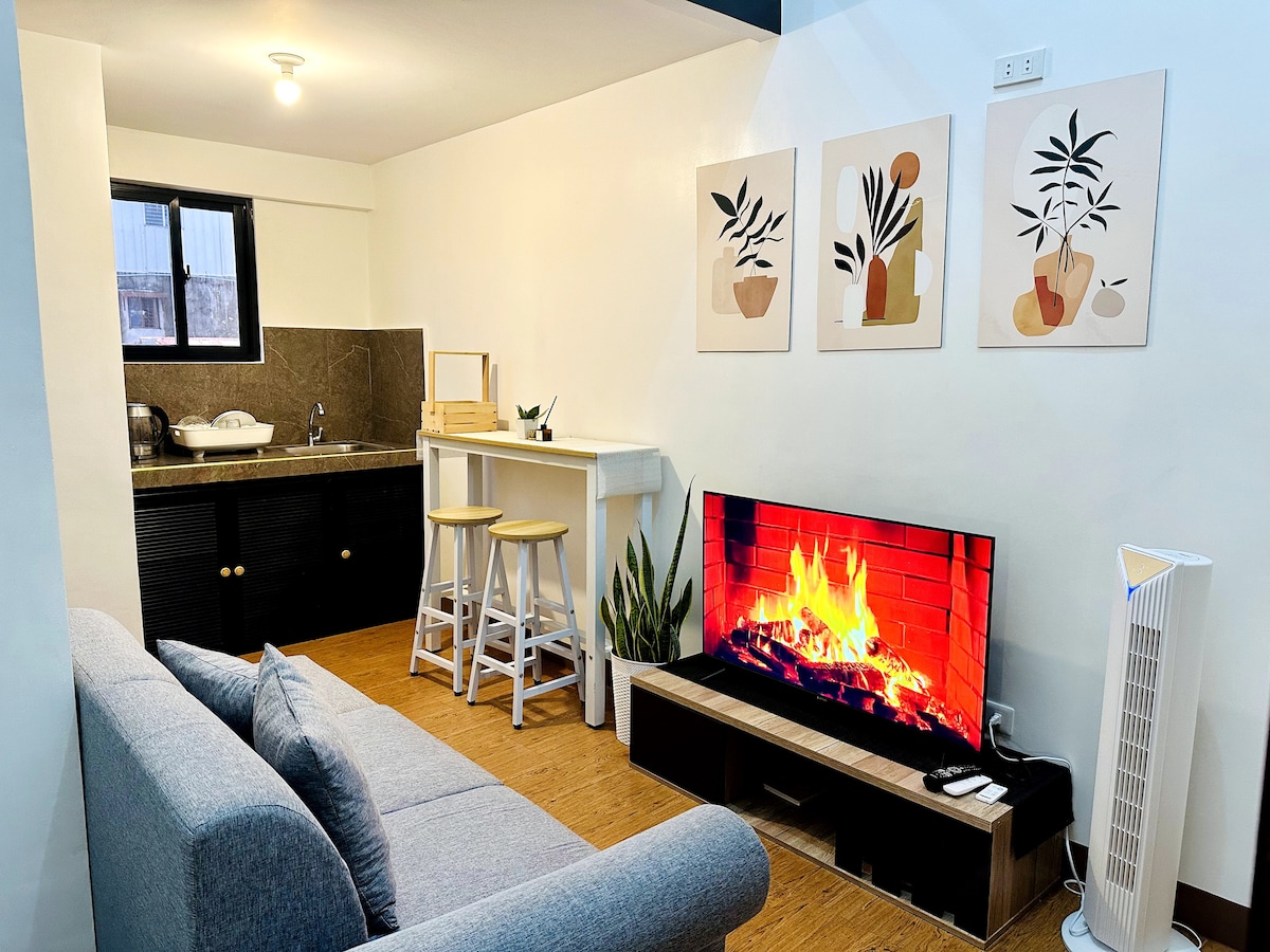 Willkommen in deinem zweiten Zuhause! Wir leben derzeit in Kanada, daher vermieten wir unser voll möbliertes 25 Quadratmeter großes Studio-Penthouse, das sich im Herzen von Commonwealth und Batasan Hills befindet. Sie ist ideal für 2 Erwachsene und 1 Kind und verfügt über ein Queensize-Bett und ein gemütliches 2-Sitzer-Sofa im Wohnbereich. Die Küche ist komplett mit Koch- und Essgeschirr für deinen Komfort ausgestattet und das Badezimmer verfügt über kostenlose Pflegeprodukte. Gäste genießen auch freien Zugang zu den Annehmlichkeiten der Eigentumswohnung. ♡