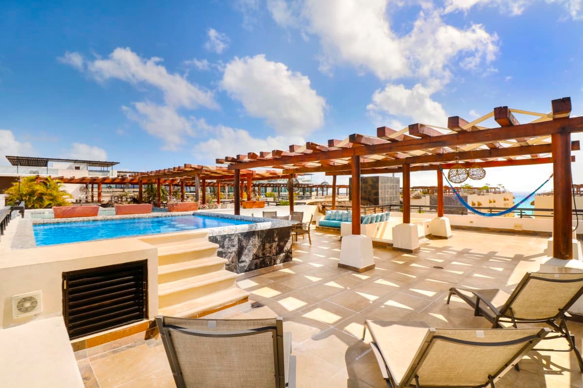 Cielito Lindo is a PH Studio just in the heart of Playa Del Carmen. With an oceanside view and just less than 450 meters away from the beach. Cielito Lindo is fully equipped with all your needs. Enjoy a private balcony, a second floor in the same unit with a Private pool, an area to BBQ, and enjoy a great evening. With also access to common areas such as a GYM, SAUNA, and INFINITY POOL. All within the walking distance of the majority of restaurants, supermarkets, branded stores, and nightclubs.