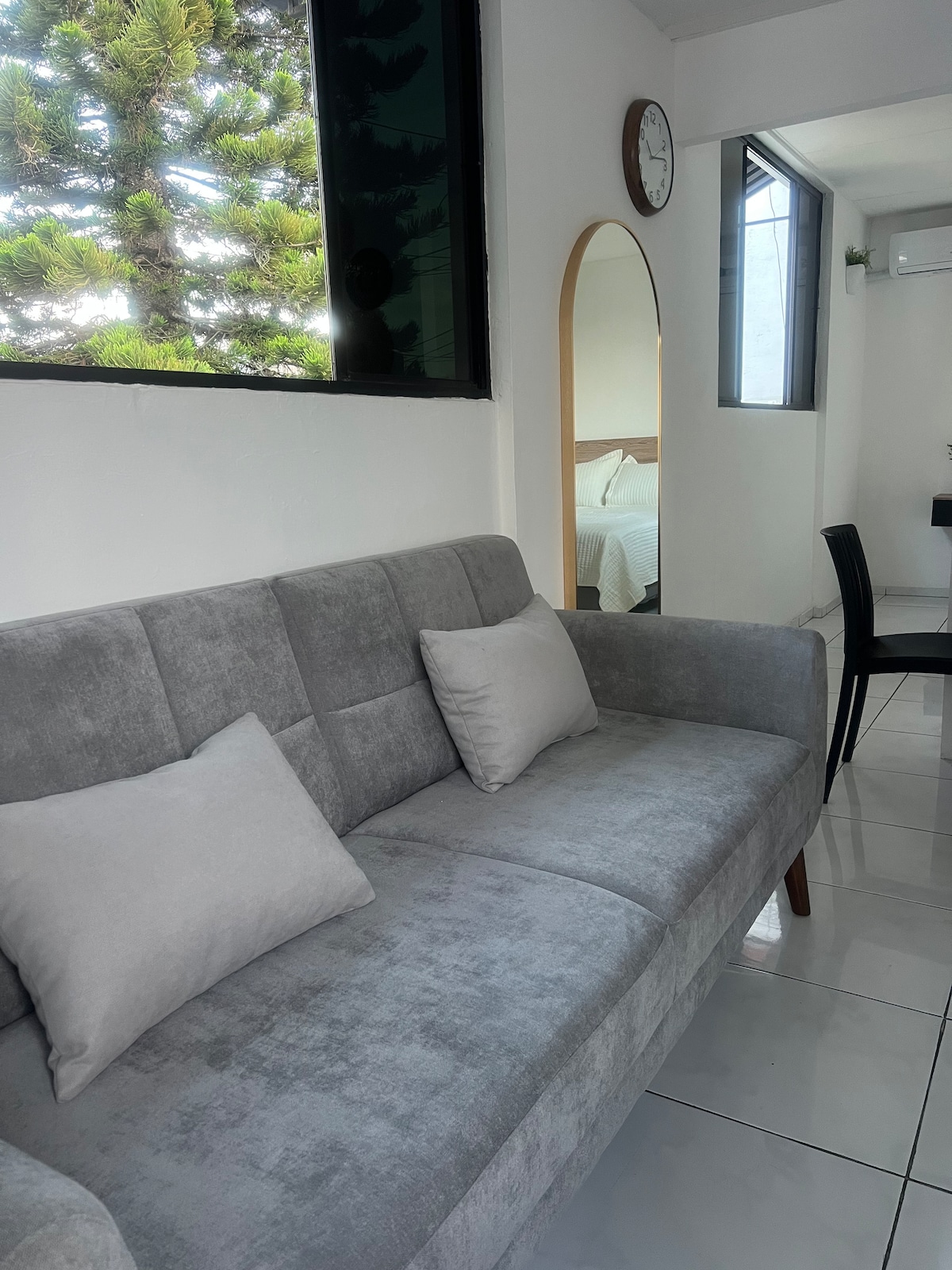 Ausgezeichnete Lage in San Salvador! Nur wenige Schritte von der Plaza Presidente entfernt, eine voll ausgestattete Loft-Wohnung für deinen Freizeit- oder Geschäftsaufenthalt!! Hier findest du: • 5G-WLAN • 55Zoll Smart-Fernseher • Bluetooth-Lautsprecher • Brettspiele • Klimaanlage • Kühlschrank • Gasherd • Oven • Mikrowelle • Bügeleisen - Bügelbrett • Fön • Dusche • Rollvorhänge Die Wohnung ist mit einem modernen Esszimmer, einer Küche, einem Schlafsofa und 2 Einzelbetten ausgestattet, damit du deinen Aufenthalt genießen kannst.