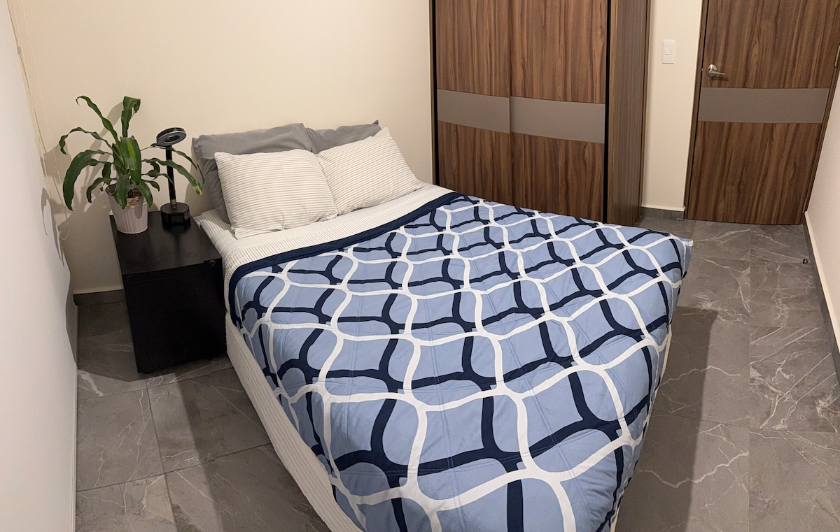 Minimalist apartment in Mexico City. Excellent apartment with jaw dropping view, it has two bedrooms, kitchen, bathroom, laundry room, living room, elevators, parking place and 24/7 security. Excelent location to visit the main attractions of the city, we are at 30 minutes from Polanco, Roma / Condesa, the capital's downtown. In addition, the neighborhood has great places such as parks, museums and restaurants among other things.