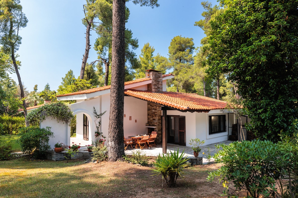 Ferienhaus mit zwei Schlafzimmern und großem Garten in Sanis Kiefernwald. Beide Schlafzimmer verfügen über Klimaanlage und Deckenventilatoren, es gibt eine voll ausgestattete Küche, WLAN, einen Flachbildfernseher und eine geräumige Veranda mit Blick auf den Wald. Egal, ob du nach einem Ort zum Entspannen suchst oder alles sehen möchtest, was Chalkidiki zu bieten hat, das Haus bietet das Beste aus beiden Welten. Der nächste Strand ist kostenlos und zu Fuß oder mit dem Auto (750 m) erreichbar. Geschäfte und Restaurants sind weniger als 10 Fahrminuten entfernt. Kostenlose Parkplätze für Gäste.