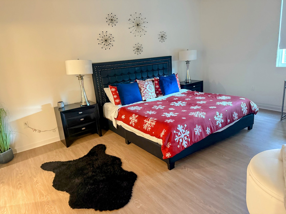 Willkommen in deinem urbanen Refugium! Diese stilvolle Wohnung mit 2 Schlafzimmern und 2 Bädern verbindet modernen Luxus und Komfort. Genieße einen offenen Wohnraum mit viel Tageslicht, eine Gourmet-Küche mit Edelstahlgeräten und eine Master-Suite mit Kingsize-Bett und eigenem Bad. In einem pulsierenden Viertel gelegen, bist du nur wenige Schritte von trendigen Cafés und Geschäften entfernt. Mit Annehmlichkeiten wie kostenlosem WLAN und sicheren Parkplätzen ist diese luxuriöse Wohnung der perfekte Ausgangspunkt für dein Stadtabenteuer.
