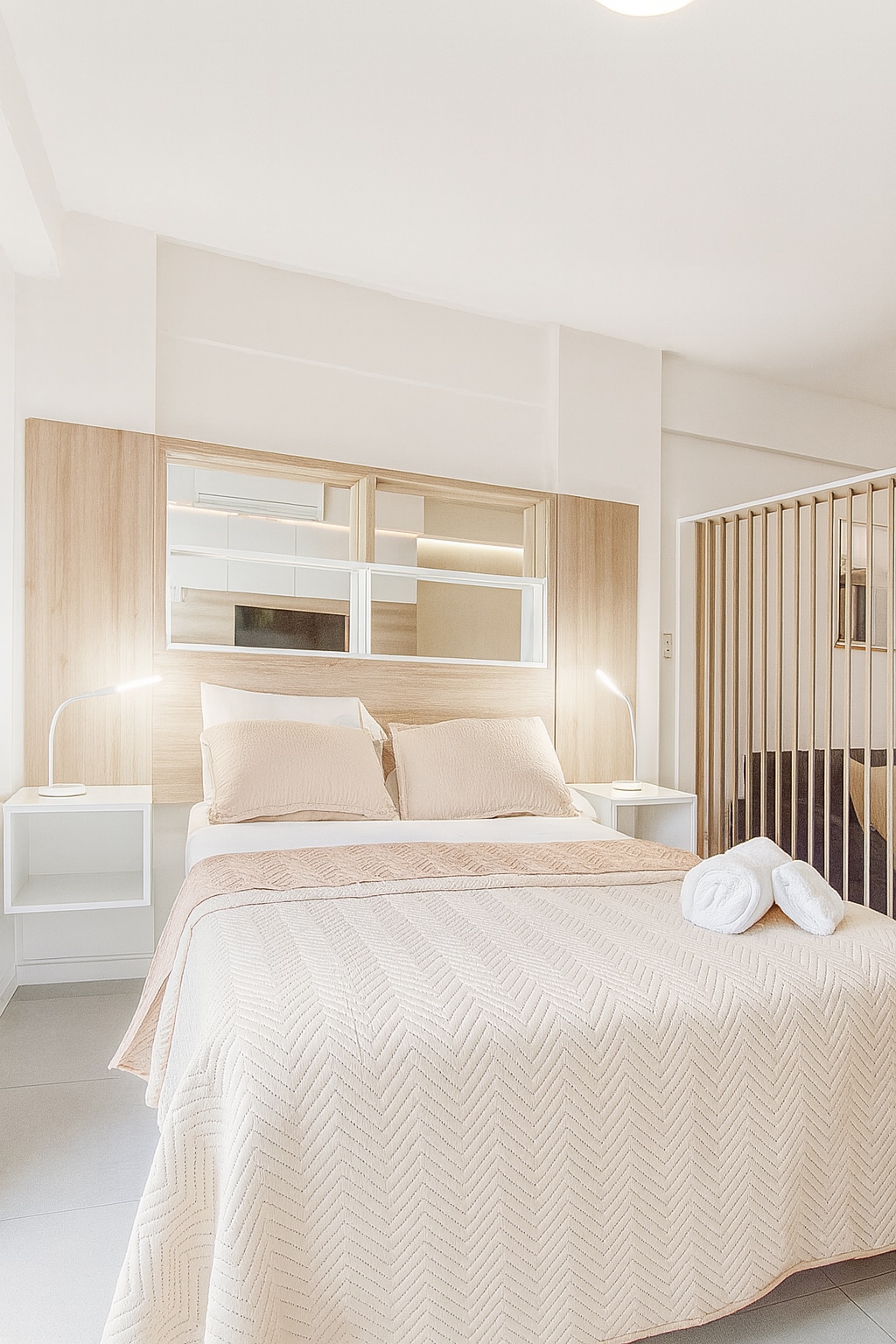 Entdecke den Komfort des NanoSmart Studio, eines modernen Raums im 3. Stock, der sich perfekt für kurze oder lange Aufenthalte eignet. Genieße ein Queensize-Bett, ein Schlafsofa, eine Klimaanlage, einen begehbaren Kleiderschrank, einen 40-Zoll-Fernseher mit Chromecast, schnelles WLAN, ein komplettes Badezimmer und eine voll ausgestattete Küche. Das Gebäude verfügt über einen Pool, einen Arbeitsbereich, einen Grill, einen Veranstaltungsraum und eine Wäscherei gegen Aufpreis. Stil, Komfort und Zweckmäßigkeit an einem Ort für bis zu 3 Gäste.
