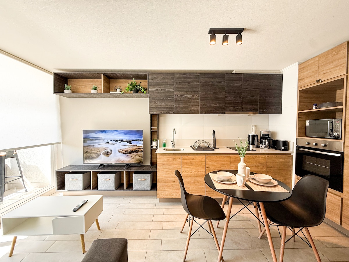 Willkommen in deiner neuen Ecke in Santiago! Entspanne dich in diesem niedlichen, komfortablen, modernen Dekor, das ich mit viel Liebe und Hingabe für dich vorbereitet habe. Ideal für Familien oder Freunde. Du befindest dich in einer der besten Gegenden: 3 Blocks vom Einkaufszentrum Parque Arauco, Open Kennedy und in der Nähe von Casa Costanera, Alto las Condes und Costanera Center. Supermarkt direkt vor der Tür und viele gute Restaurants in der Nähe. Das Viertel Nueva Las Condes ist sehr sicher und super schön, ideal für dich, um dich wie zu Hause zu fühlen!