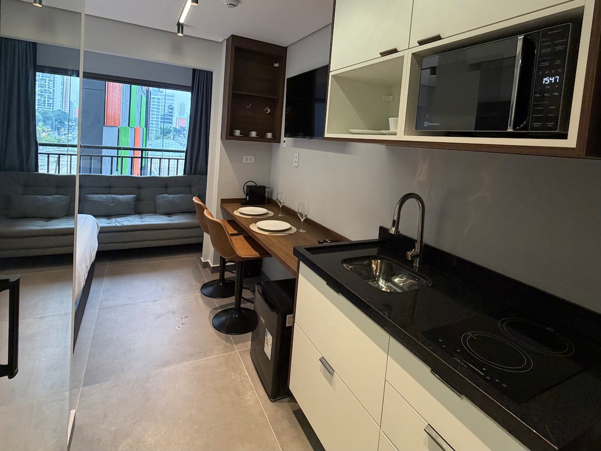 Wohnen Sie an der begehrtesten Adresse von SP, nur wenige Schritte von den besten Bars, Restaurants und Business-Centern entfernt. Das Highlight? Absolute Ruhe dank schallisolierter Fenster für einen makellosen Schlaf. Genießen Sie Hotelkomfort mit der Freiheit eines eigenen Zuhauses: • Tägliche Reinigung & 24h-Rezeption • Kostenloser Parkplatz mit Parkservice (Valet) • Highspeed-WLAN, Inverter-Klimaanlage & Smart-TV • Voll ausgestattete Küche Perfekt für Geschäftsreisen oder Freizeit!