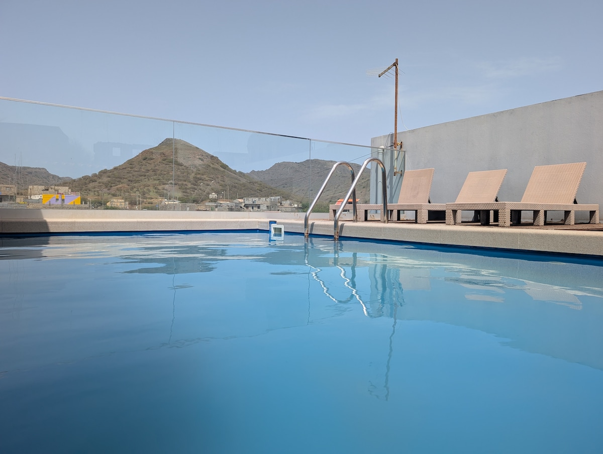 Abseits vom Lärm, 300 m hoch in den grünen Hügeln der Insel Santiago, lädt dieser von einem Architekten entworfene Rückzugsort zum Durchatmen, Entschleunigen und Wiederverbinden ein. Mit Meer- und Bergblick, voller Privatsphäre und Natur vor der Tür ist es ein seltener Zufluchtsort für digitale Nomaden, Paare oder Ruhesuchende. Wache mit Vogelgesang und raschelnden Perlhühnern auf, spaziere auf wilden Pfaden und speise unter dem Sternenhimmel. Ein Auto bedeutet hier Freiheit – fülle es auf, schalte ab und genieße den einfachen, schönen Rhythmus von CV. Ein Aufenthalt außerhalb der Zeit.
