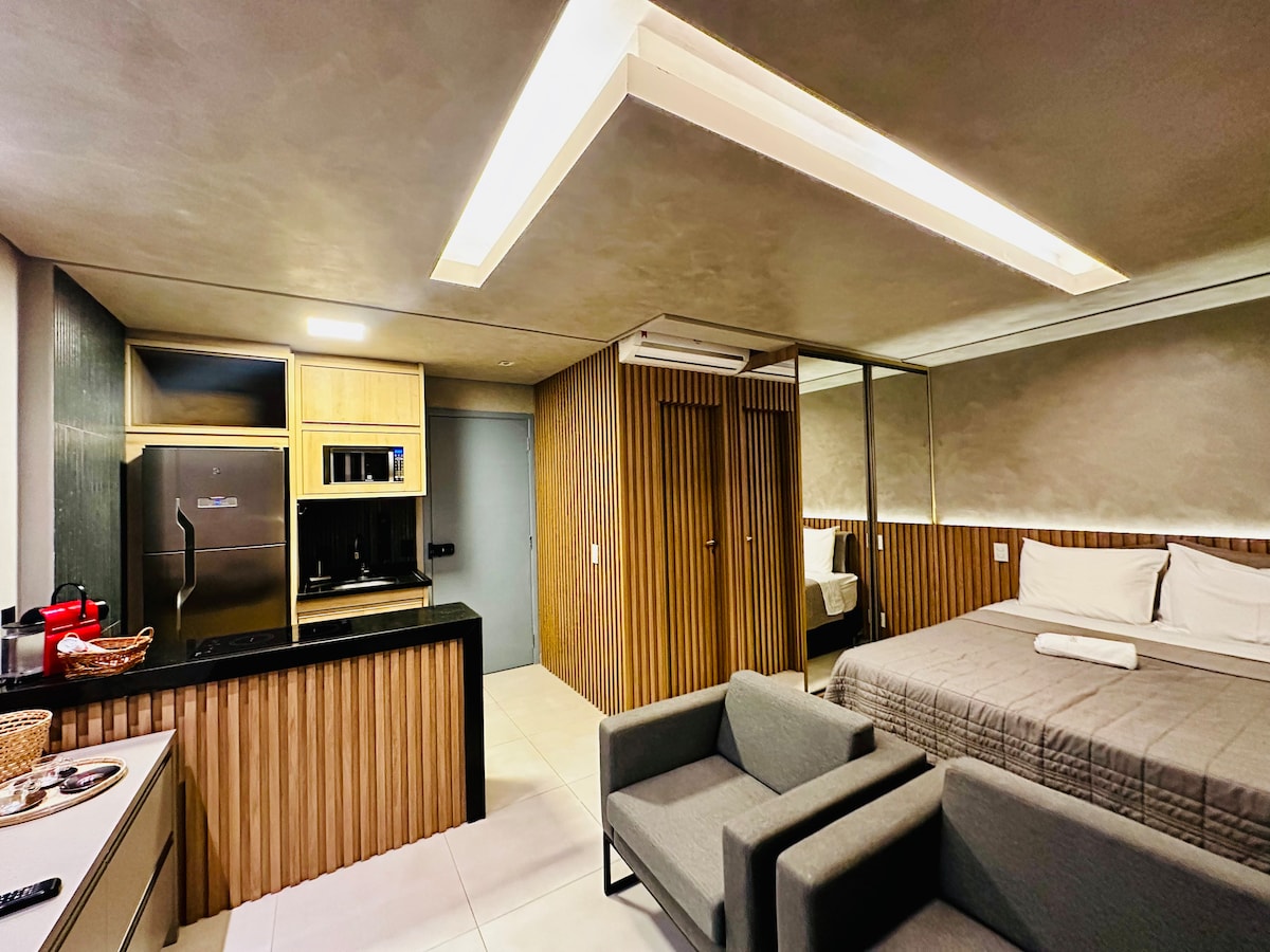 ✨️ Dieses moderne Studio kombiniert Komfort und Funktionalität mit integrierten Räumen, hellem Dekor und einem Balkon zum Entspannen mit Blick auf die Stadt. Ideal für diejenigen, die einen ruhigen Aufenthalt suchen, gut gelegen und mit dem Charme, der dich von der ersten Minute an wie zuhause fühlen lässt. ✨️ Die Wohnung befindet sich in einer der wichtigsten Eigentumswohnungen der Stadt. Restaurants, Cafeteria, Pool im 19. Stock, Fitnessraum, Sauna, Badewanne, Spielzimmer, Arbeitszimmer, eigener Markt in der Eigentumswohnung verfügbar.