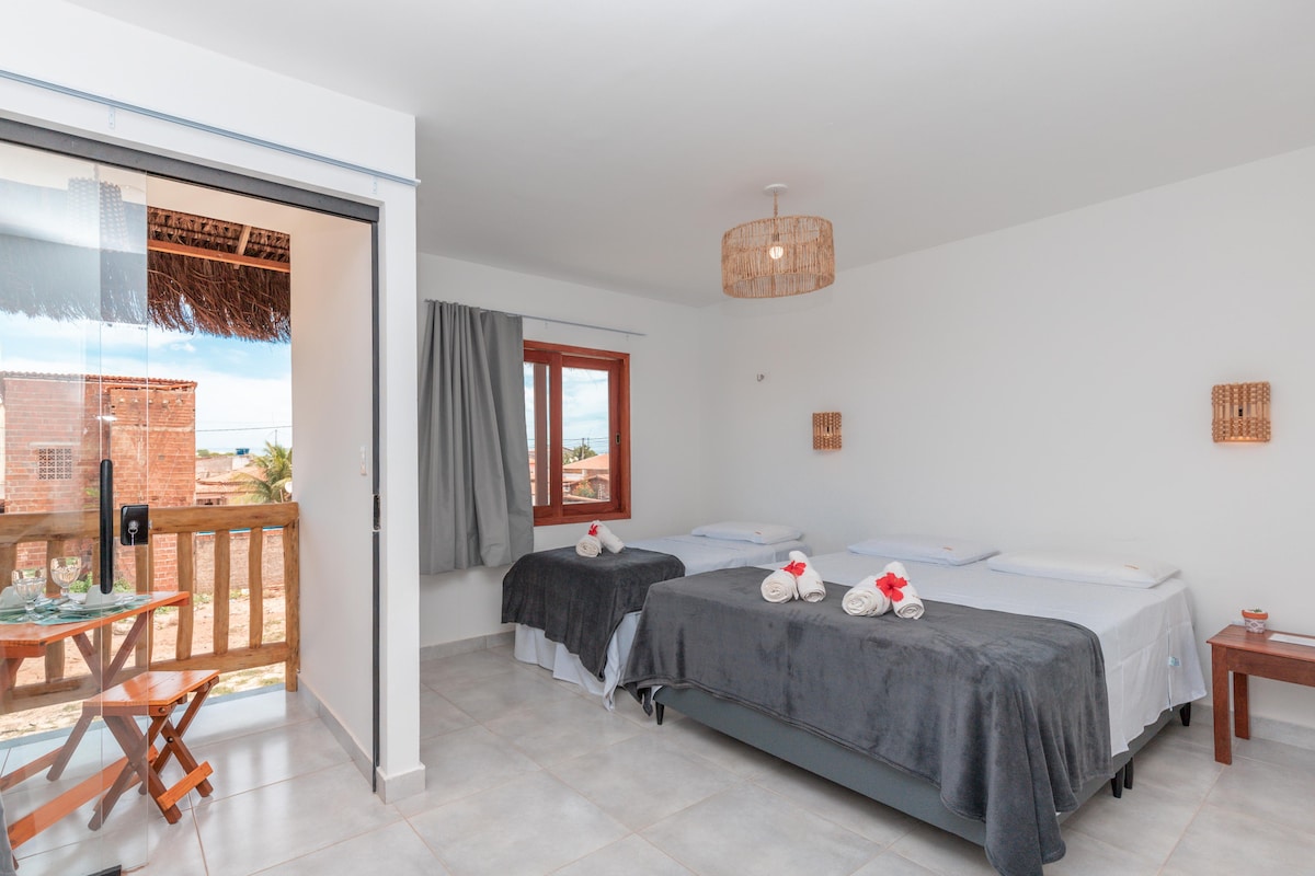 CASA MÓDICO HAUS AM STRAND, SICHER und RUHIG. PERFEKT für FAMILIE, FREUNDE und KITE-LIEBHABER! Vor dem Meer, am Kite Point von São Miguel do Gostoso - KAPAZITÄT 8 PERSONEN mit Komfort -4 ZIMMER, alle Suiten mit Badezimmer -AR COND. in allen Zimmern - VOLLES KOCHEN - ININGZIMMER -GOURMETBEREICH MIT ESSTISCH - FRÜHSTÜCK und ZIMMERREINIGUNG inbegriffen -DECK von 80 m ² vor dem Haus - WASCHMASCHINE - PRIVATES GRUNDSTÜCK vor dem MEER -PRIVATER ZUGANG
