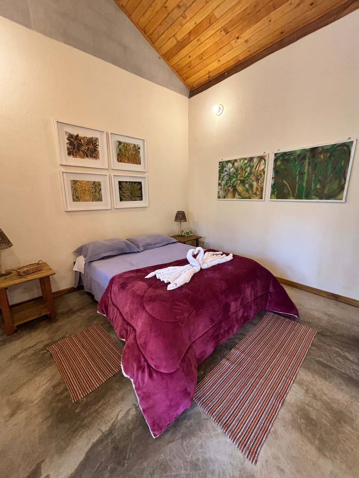 Com alimentação completa vegetariana incluída, você vai adorar estar nesta charmosa suíte localizada na comunidade intencional do Instituto Terra Luminous. Acesso aos espaços comuns de toda ecovila, incluindo cozinha comunitária, sala de convivência, com uma lareira bem gostosa, biblioteca, varandas com redes, co-working, trilhas na mata, lago para banho e bica da nascente.