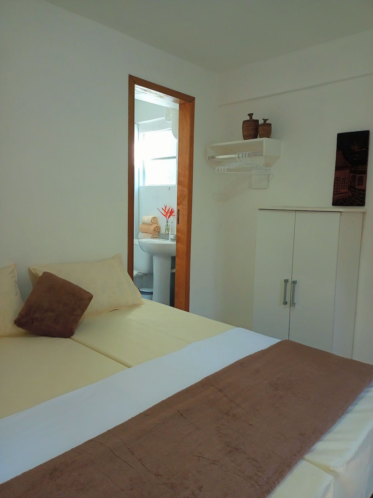 🌟 Stell dir vor, du wachst in der Natur von Morro da Cruz und im Komfort eines klimatisierten Zimmers nur für dich auf. Hier verlangsamt sich die Zeit und das Leben wird Licht. Ein paar Minuten von den schönsten Stränden in Saquarema entfernt: 6 Minuten von Itaúna und 9 Minuten von Vila entfernt. Deine Zuflucht wartet auf dich. ✨ Was dich hier erwartet: ☕ Frühstück Gemütliche, klimatisierte 🏡 Suite Gemeinsam genutzter 👩🏽🍳 Gourmetbereich 🏊♀️ Swimmingpool, Grill und Garage 📶 WLAN, Fernseher, Bettwäsche und Bettwäsche Es gibt❌ keine Minibar im Zimmer