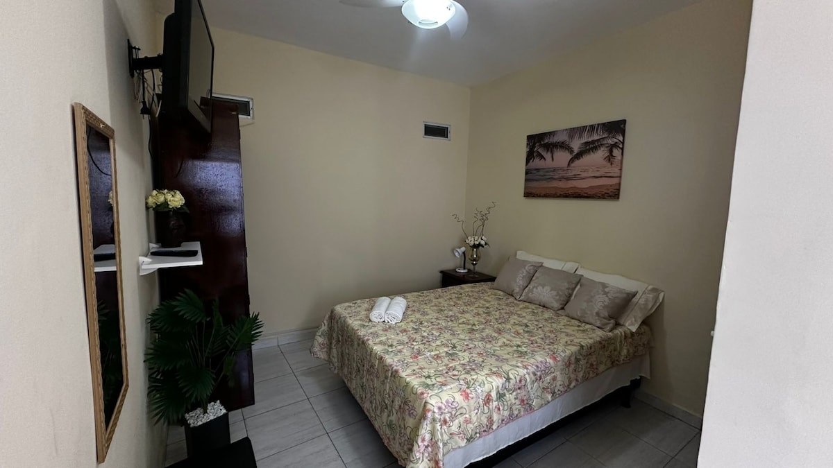 Barrinha Zimmer in Saquarema – nur wenige Schritte vom Strand Itaúna entfernt! Wenn du auf der Suche nach einer komfortablen, gut gelegenen Unterkunft mit diesem Strand und dieser erholsamen Atmosphäre bist, bist du hier genau richtig! Unser Zimmer befindet sich im ersten Stock des Gästehauses, mit Blick auf den Pool, in einer familiären, ruhigen und gemütlichen Umgebung. 1 Doppelbett + 1 Einzelbett (für bis zu 3 Personen) Konditionierung Fernseher Guarda-roupas ° Minibar; Eigenes Bad
