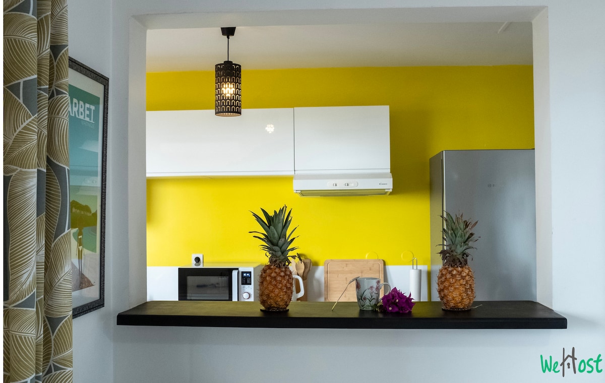 Entspannen Sie sich in dieser ruhigen und eleganten Unterkunft. An der Karibikküste in Schoelcher, eine charmante unabhängige Wohnung im Erdgeschoss der Villa mit Meerblick. Ich wohne mit meiner Familie im oberen Teil der Villa. Vollständig möbliert mit Terrasse, Pool, Parkplatz und Garten in einer ruhigen, sportlichen und dynamischen Gegend. 3 Minuten vom Strand Anse Madame und dem Dorf Schoelcher entfernt.