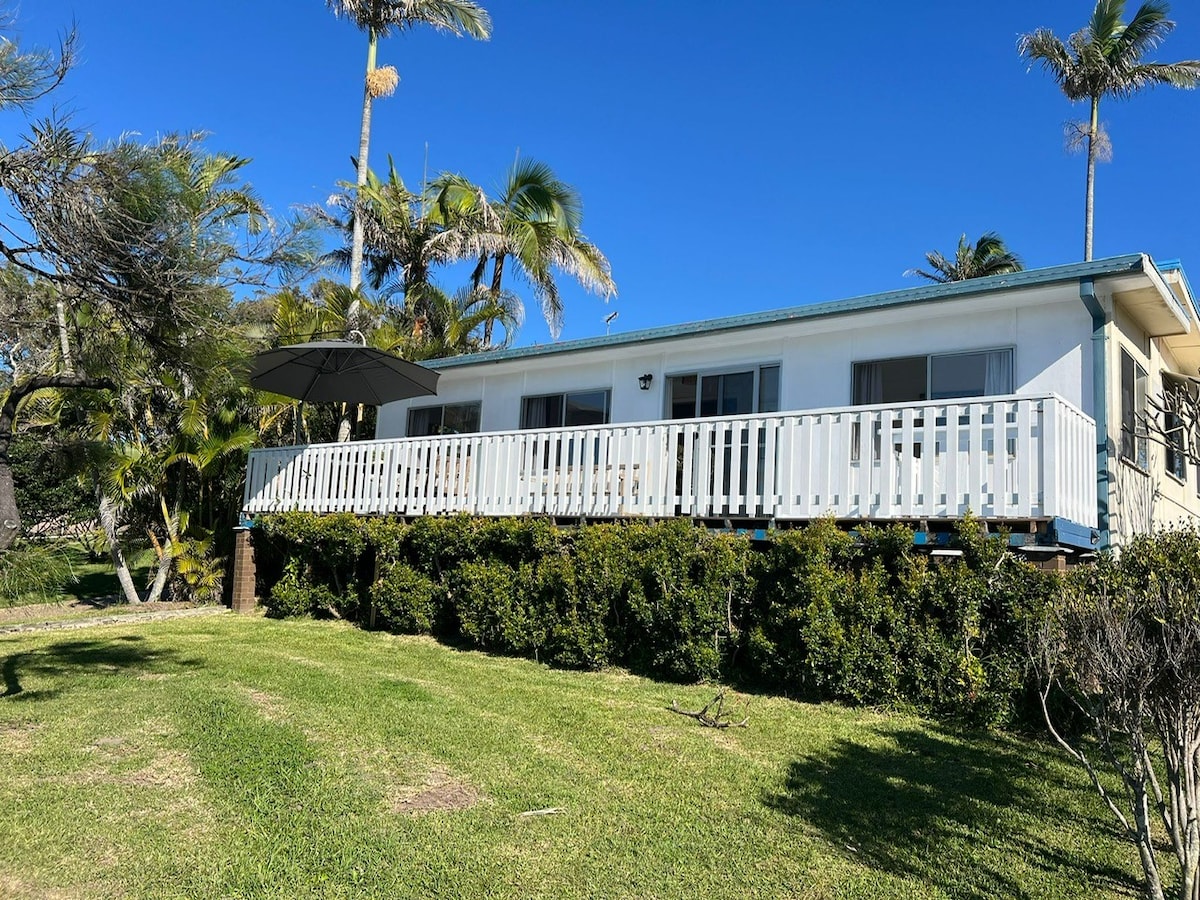Komfortables und geräumiges offenes Wohnen, älteres Haus mit großer Familienküche und atemberaubendem Blick auf das Meer und das Hinterland. Romantisches King-Schlafzimmer mit eigenem Bad und privater Veranda, perfekt für Paare. Ideal auch für Familienausflüge mit separatem Kinderbereich 2. TV/DVD. Die gesamte Bettwäsche wird gestellt. WLAN-Internet und Netflix. Eingezäunter Garten, haustierfreundlich, 5 Gehminuten oder eine kurze Fahrt zum Strand. Durchgehend gefliest. Haustiere willkommen, Teleskop für Walbeobachtung. Vollständige Rückerstattung, wenn du stornieren musst.