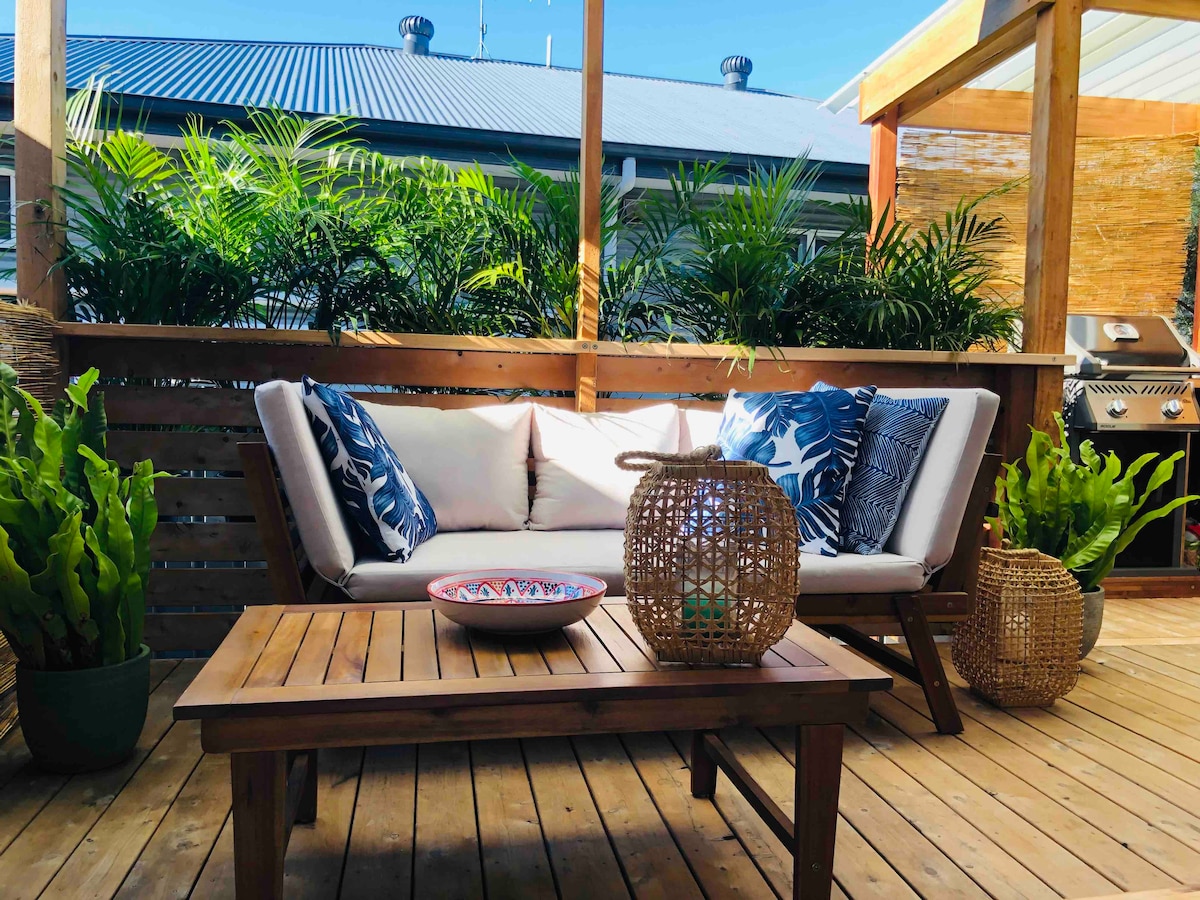 Your solar-powered tropical retreat in Coffs! Recently refreshed and set in lush gardens with fragrant plants and mature trees, Villa 2 offers peace and comfort just 3 mins from CBD dining, shops, and bars. Enjoy a spacious patio with BBQ and fan, air-con in all rooms, and brand-new furnishings. One of four villas—ideal for families or work groups. On-site parking included.