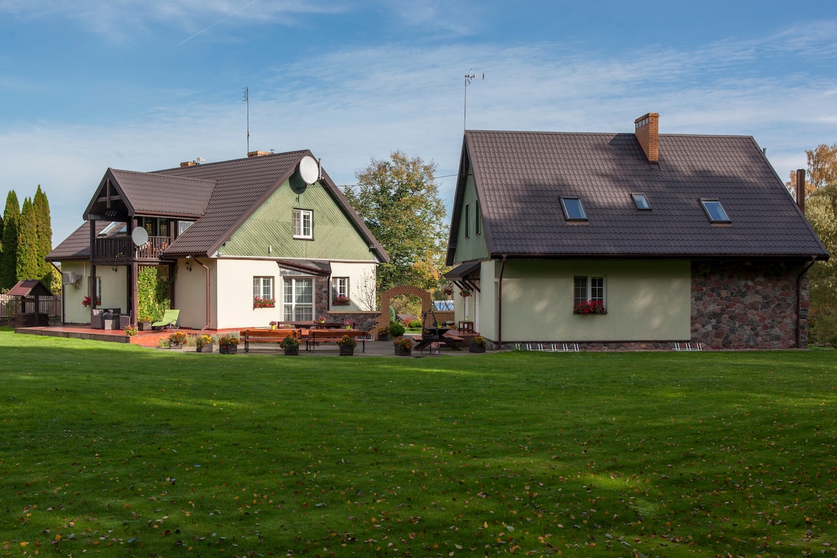 Ein ganzjähriges Ferienhaus im Dorf Oszkina. Der Sejwa-See ist 200 Meter entfernt. Am Waldrand. Im Erdgeschoss befindet sich ein Wohnzimmer, das mit einer voll ausgestatteten Küche verbunden ist. Das Wohnzimmer verfügt über einen direkten Ausgang zur Terrasse. Badezimmer mit Dusche. Im Obergeschoss befinden sich zwei Zimmer. Eines hat ein Doppelbett, das andere hat zwei Einzelbetten. Jedes Zimmer verfügt über eine Klimaanlage, Kleiderbügel, Kommode. Parkplatz. Es gibt eine Sauna auf dem Grundstück. Es gibt auch einen Grill, Terrassenmöbel, Liegestühle. Das gesamte Grundstück ist eingezäunt.