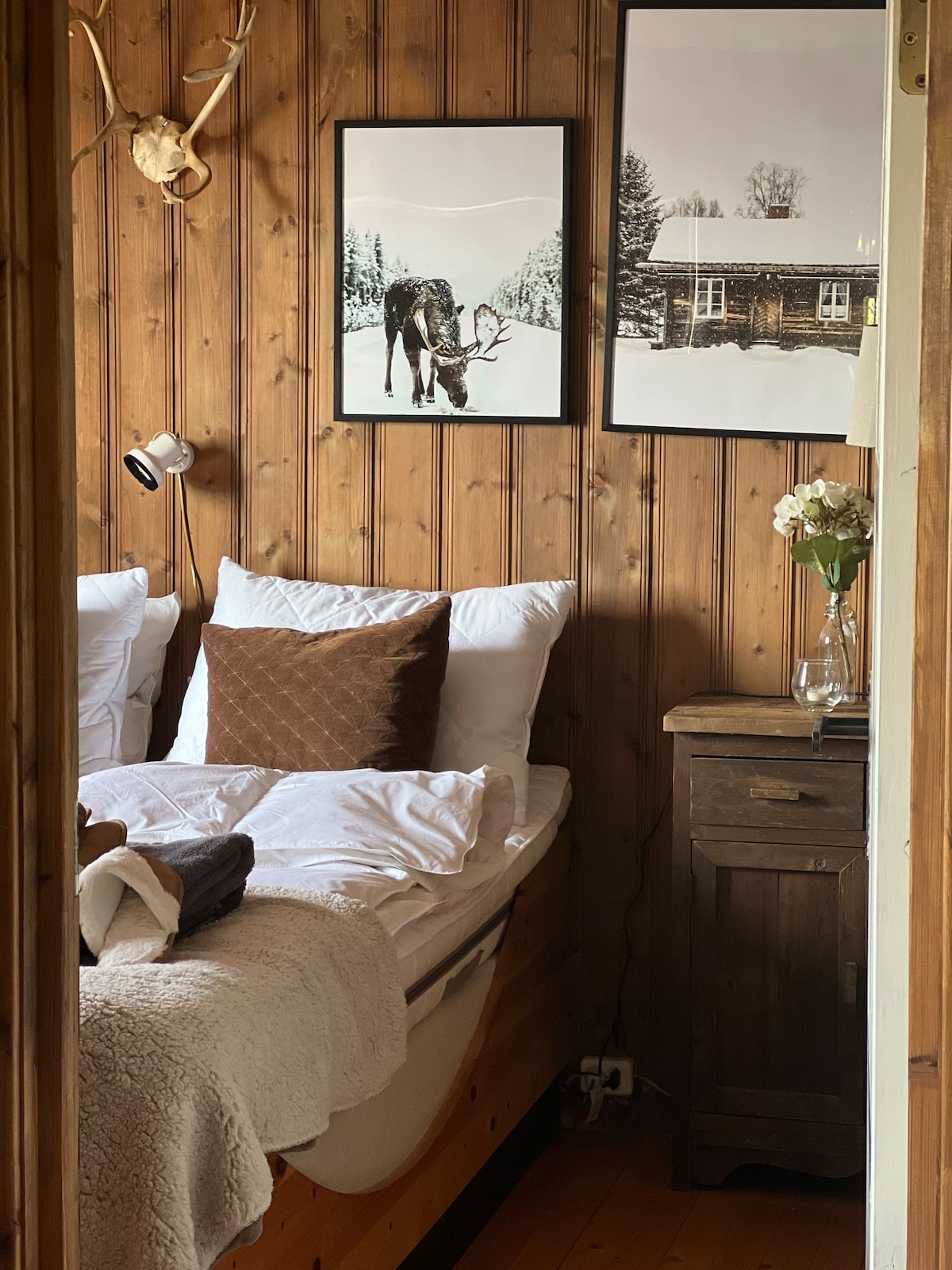 Einfache und charmante Berghütte an der Baumgrenze, 1000 Meter über dem Meeresspiegel. Es ist nur einen Kilometer vom Nationalpark entfernt, und es sind fünf Kilometer zu Fuß zur Peer-Gynt-Hütte. Die Hütte verfügt weder über fließendes Wasser noch über Strom, aber sie verfügt über Solarstrom, der im Allgemeinen zum Aufladen von Telefonen und zur Verwendung von Lampen ausreicht. Wasser wird aus dem Bach hinter der Hütte geholt. Es gibt eine Außentoilette im Nebengebäude neben der Hütte. Die Hütte wird mit Brennholz beheizt.