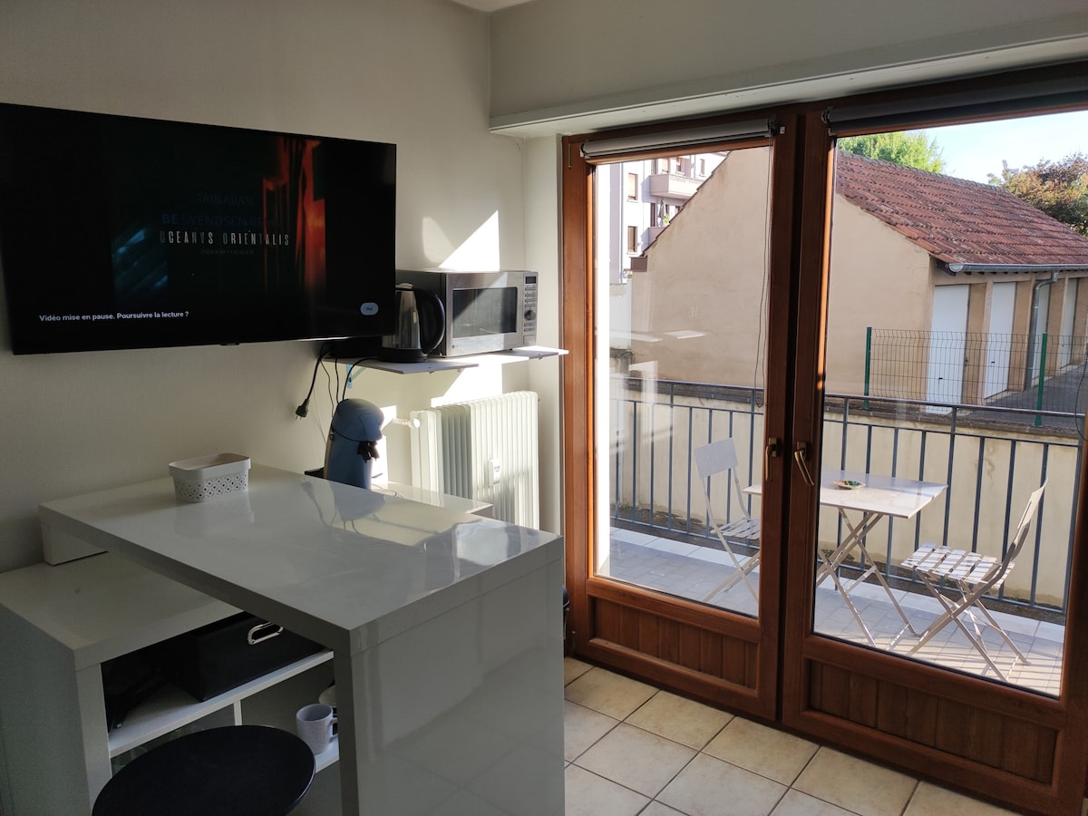 Maisonette-Wohnung im 1. Stock eines Einfamilienhauses mit einer ökologischen Architektur in einem raffinierten Stil. Zwischen Eiche, Esche, Kirsche, Tanne und Schwarz-Pappel werden Sie die Energie des Holzes spüren! Die Unterkunft ist 2 Minuten zu Fuß vom Bahnhof entfernt, in der Nähe des Stadtzentrums und der Geschäfte.