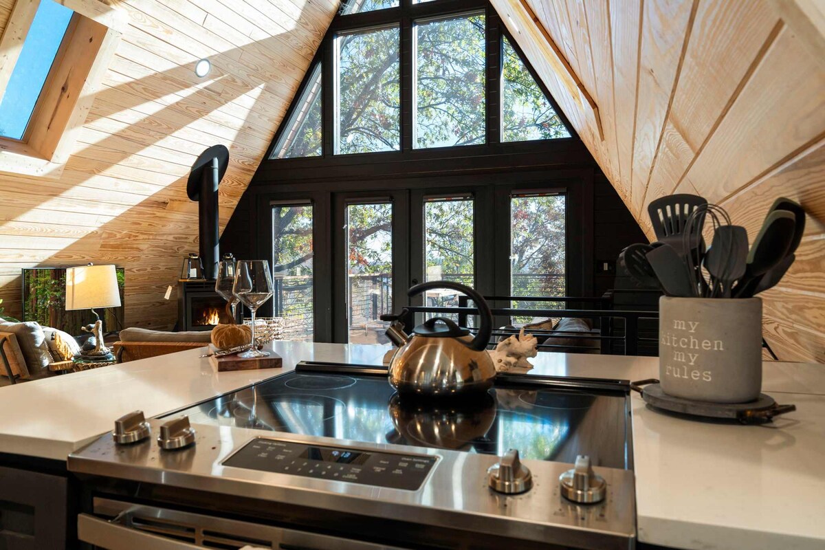 2 Betten, 2 Badezimmer im Herzen der Ozarks und Eureka Springs! * 18 Hektar Waldgebiet nur 11 Minuten vom Beaver Lake und 7 Minuten vom Lake Leatherwood entfernt. * Genieße eine voll ausgestattete Küche, eine private Terrasse und einen herrlichen Blick auf das Tal * Whirlpool mit Fensterblick * WIFI * 50-Zoll-Smart-TV mit Netflix-Zugang inklusive. * Elektrischer Kamin. * Lokal gerösteter Kaffee wird bereitgestellt. * Minuten zu Wanderungen, Mountainbike-Strecken * 5 Meilen bis zur historischen Innenstadt von Eureka Springs.