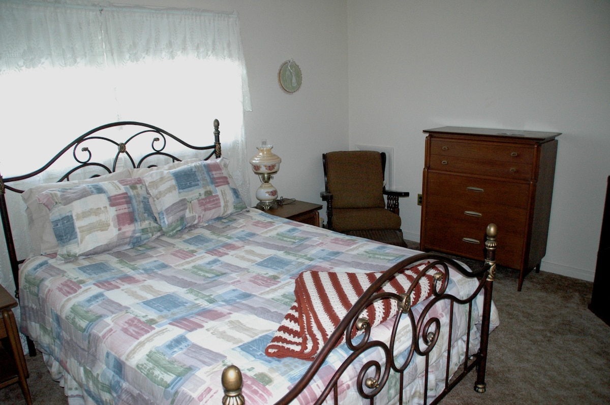 Die Wohnung ist eine ruhige, saubere und gemütliche 400 Quadratfuß große Wohnung mit einer voll ausgestatteten Küche. Das Badezimmer ist mit einer Dusche/Badewanne ausgestattet. Die Toilette ist eine IN SICH GESCHLOSSENE KOMPOSTIERANLAGE. Der Schlafbereich verfügt über ein sehr komfortables Queensize-Bett. Dies ist ein bewirtschafteter Bauernhof. Ich habe Maschinen und landwirtschaftliche Geräte in der Nähe der Wohnung. Du kannst manchmal erwarten, die Maschinen tagsüber zu hören und zu sehen. Die Wohnung hat 2 Eingänge, einen eigenen mit Terrasse und einen durch die angebaute Scheune, in der ich einige kleine Geräte aufbewahre.