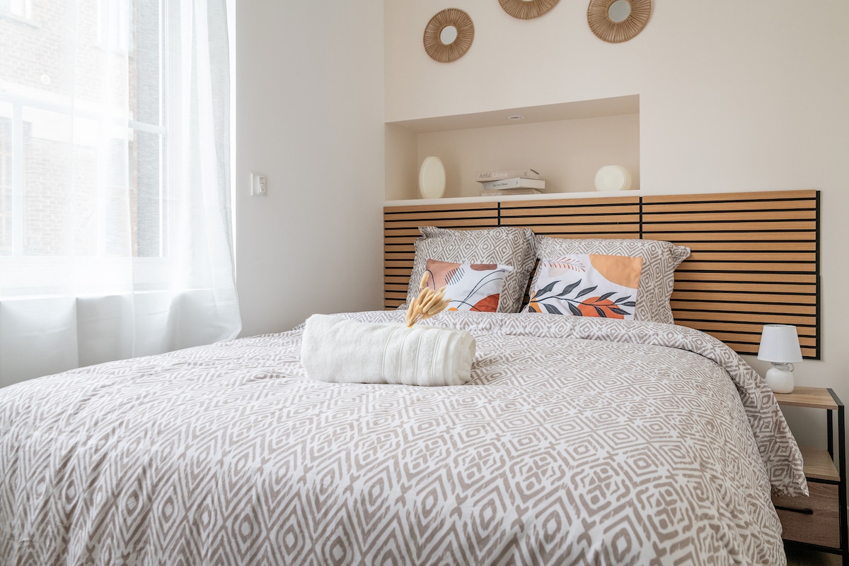 - Ruhige, moderne Design-Wohnung, 2 Minuten vom Stadtzentrum und den Geschäften, 10 Minuten zu Fuß vom Bahnhof Cambrai entfernt. - Komplett renoviert mit allem Komfort und WLAN. - Voll ausgestattete offene Küche mit amerikanischem Kühlschrank, Geschirrspüler - Badezimmer mit Dusche und Badewanne. - Ein Schlafzimmer mit Kingsize-Bett, Kleiderschrank und TV - Eine Waschküche mit einer Waschmaschine - Ein WC - Ein Schlafsofa - Bettwäsche, Handtücher und Waschlappen sind vorhanden! - Eine Senseo-Kaffeemaschine