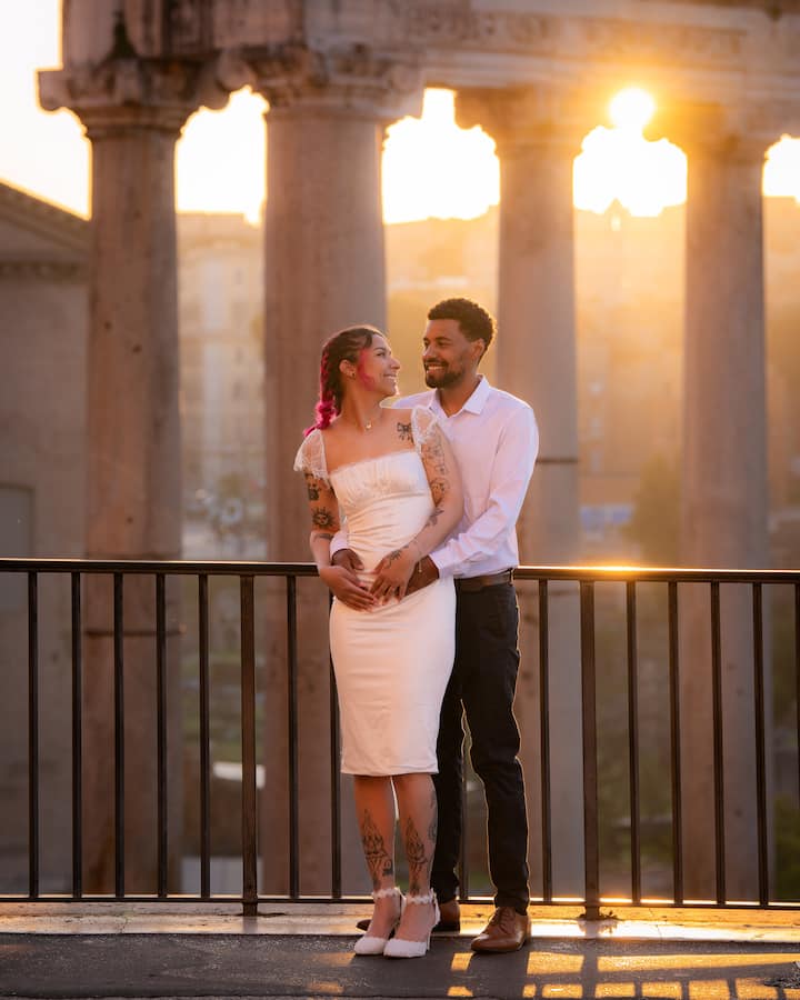 Erlebe Rom bei Sonnenuntergang, wenn die Stadt im goldenen Licht leuchtet. Du kannst zwischen zwei atemberaubenden Routen wählen: eine durch die Terrazza del Belvedere, die Terrazza del Pincio und die Gärten der Villa Borghese oder eine andere, die dem Kolosseum, die Campidoglio-Terrasse und Terrazza Caffarelli folgt. Ich führe dich zu den besten Aussichtspunkten und dem Abendlicht für authentische, elegante Porträts. Optionales kurzes Video-Add-On verfügbar.