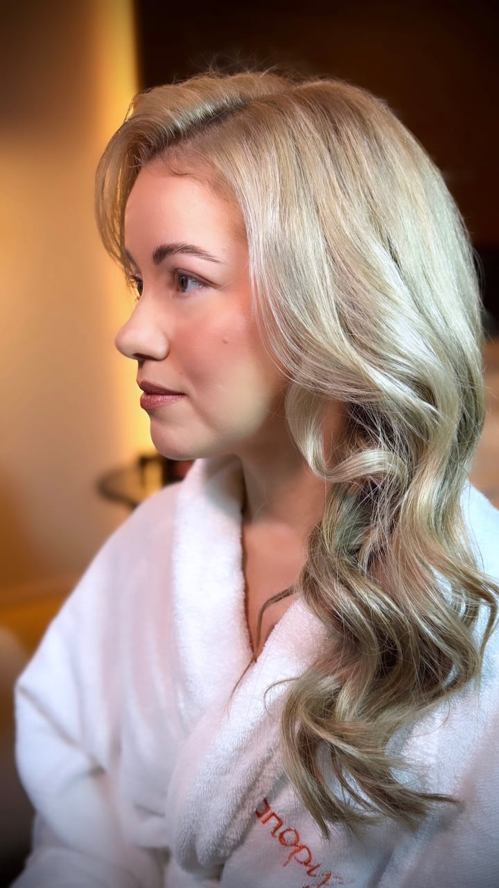 Erhalte einen hochauflösenden, langanhaltenden Make-up-Look mit Haarstyling (weiche Locken oder klassische Wellen), individueller Hautvorbereitung und Feuchtigkeitspflege.