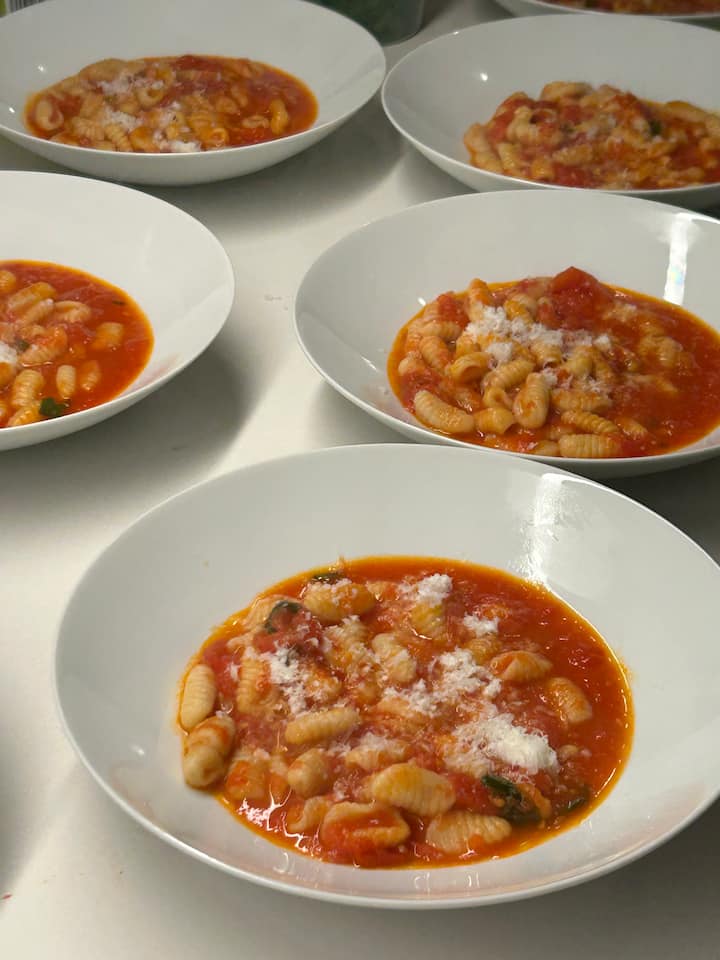 – Handgerollte Cavatelli mit Lammragú, grünem Knoblauch und Erbsenranken