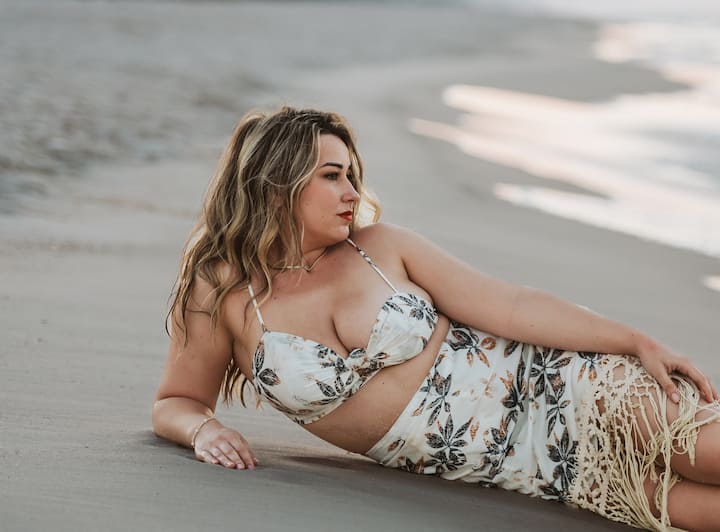 Lächeln und Sonnenuntergänge am Strand mit Amanda