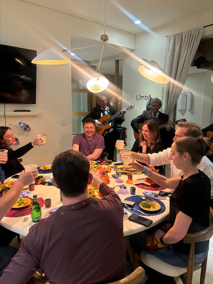Eine festliche mexikanische Dinnerparty zu Hause – Gerichte im Familienstil von deinem privaten Küchenchef, gepaart mit einem Live-Trio, das deinen Abend mit traditionellem Charme untermalt.