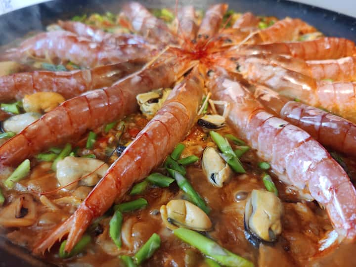 Ein Service, der frische Meeresfrüchte-Paella, lebenden Hummer und eine Auswahl an Desserts bietet. Der Grillservice umfasst hochwertiges Fleisch, wobei Halal-Optionen verfügbar sind.