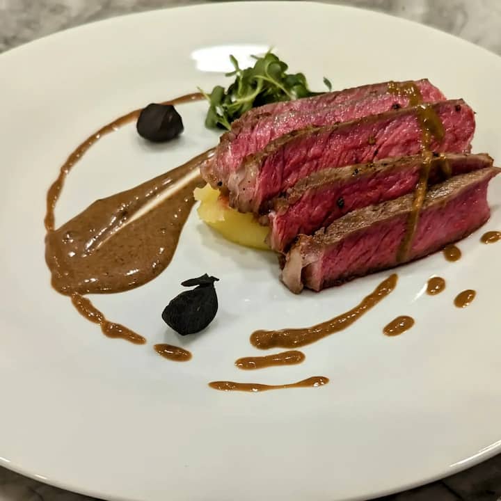 Ein raffiniertes Geschmackserlebnis, das hochwertiges Wagyu-Rindfleisch mit perfekt ausgewogenen Beilagen hervorhebt.
