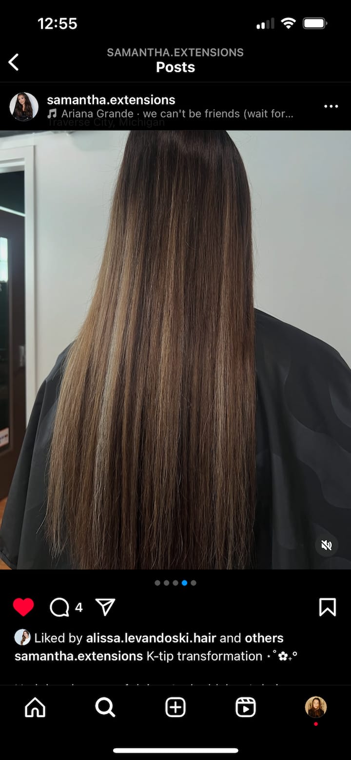 Individuelle Haarverlängerungen mit K-Spitze. Eine Beratung ist erforderlich, um den besten Look und die beste Passform zu bestimmen.