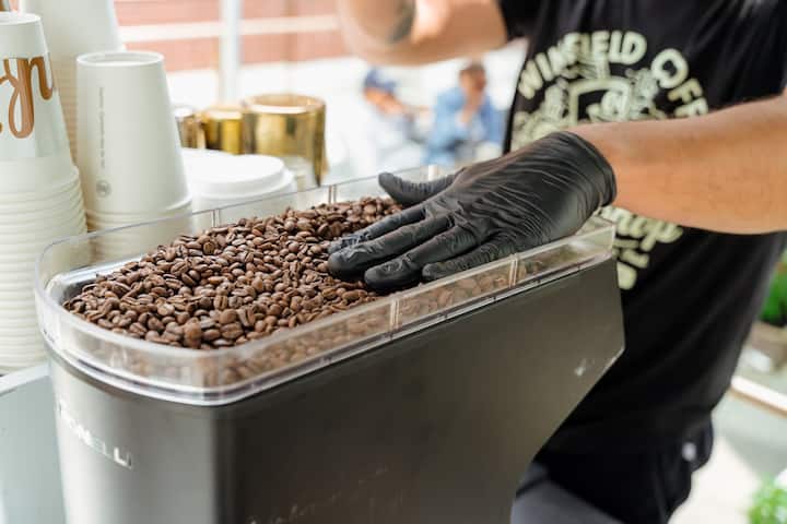 Genieße einen erstklassigen Kaffeeservice mit einem Espresso-Wagen, einem Barista und allem Zubehör. Die Reservierung des Carts erfordert mindestens 50 Gäste oder 1.750 US-Dollar zzgl. Steuern.