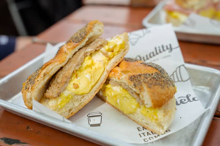 Genieße Frühstücks-Sandwiches, Burritos und Tropfkaffee für einen idealen Start in den Tag. Mindestens 750 US-Dollar für jede Frühstückslieferung. Wir liefern eine Mischung aus Frühstücksplatten, kein Service inbegriffen.