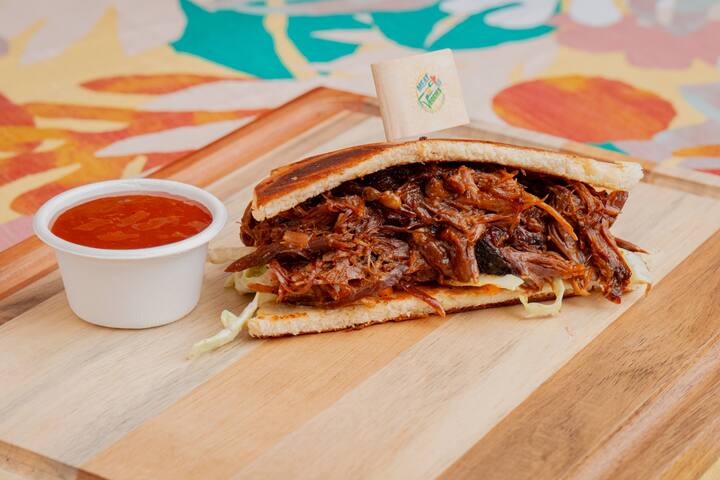 Genieße ein 5-Gänge-Menü mit dem Original Pulled Oxtail Sandwich, gehobenem Ambiente, Musik und Essen.