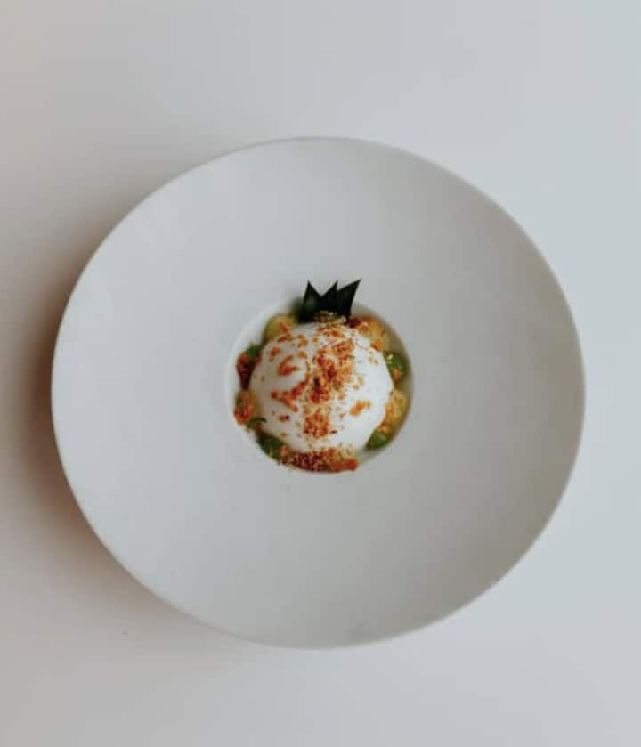 Genieße ein kuratiertes, gehobenes 4-Gänge-Menü, das auf kulinarischen Erkundungen basiert. Dieses Menü verbindet internationale Aromen mit dem kühnen Flair der Westküste. Dazu gehören ein Brotgericht, eine Vorspeise, ein Hauptgericht und ein Dessert.