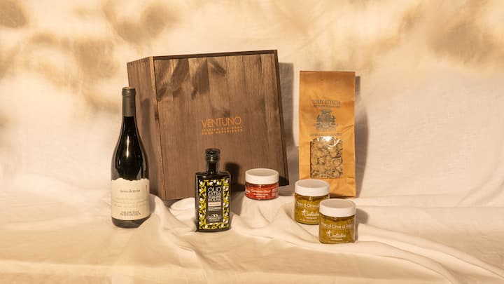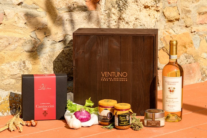 Genieße die besten handgemachten Aufstriche der Toskana, herzhafte Biscotti und Vernaccia-Wein bei einem virtuellen Rundgang durch die Landschaft. Jede Box (1 Bestellung) ist für 2 bis 4 Personen geeignet.