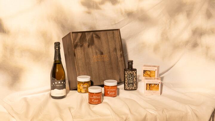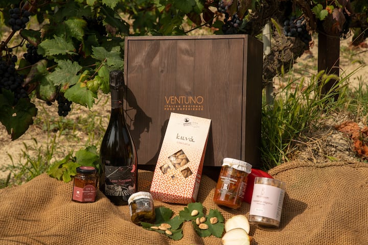 Probiere mediterrane Patès, Gemüse, Taralli-Snacks, Olivenöl und frischen Bombino-Wein für 2–4 Personen. VR-Tour durch Apulien inklusive.