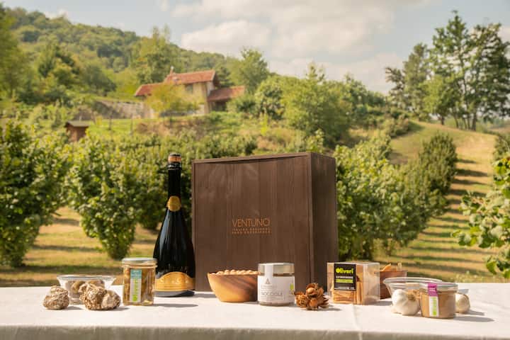 ESavor: handwerkliche Cracker, Gourmet-Oliven gefüllt mit Käse und Trüffel, Bagna-Cauda-Dip, knusprige Haselnüsse und Craftbier. VR-Tour inklusive. Für 2–4 Personen.