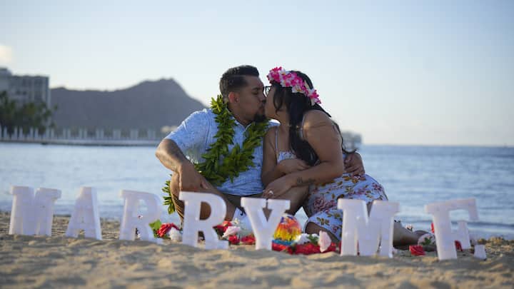 Ich fotografiere romantische Heiratsanträge für verliebte Reisende und Einheimische auf Hawaii.