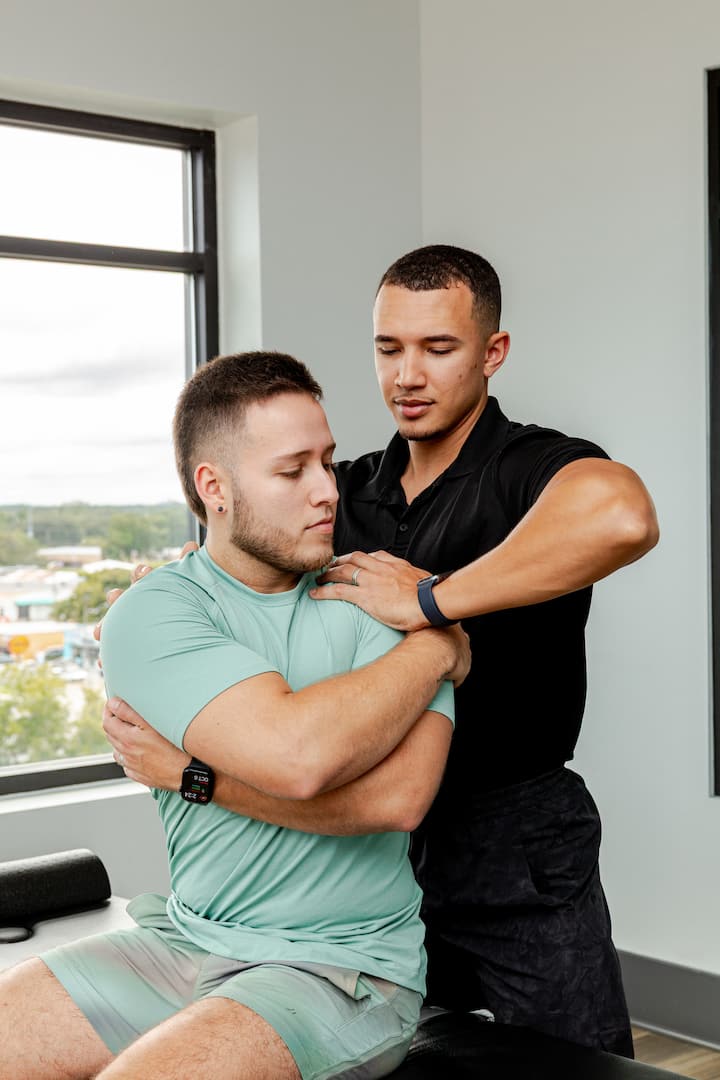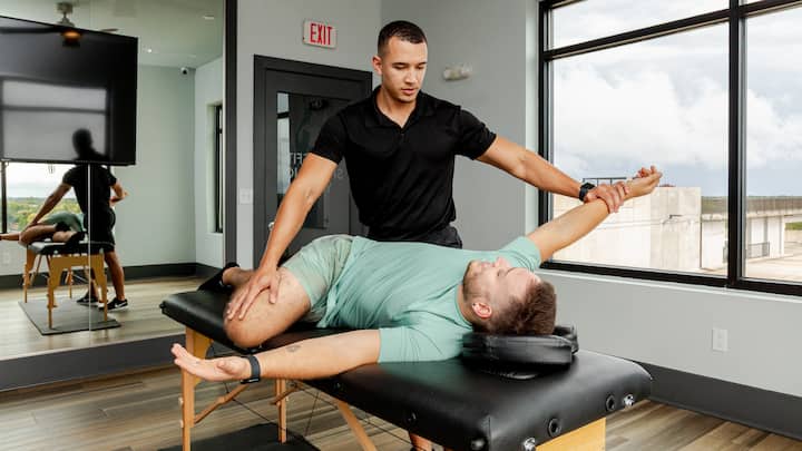 Praktische unterstützte Dehnungssitzung für den Ober- oder Unterkörper, um Muskelverspannungen zu lösen und den natürlichen Bewegungsumfang der Muskeln zu erhöhen.
