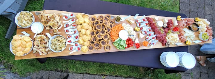 Am besten geeignet für Garten- oder Poolparty, Charcuterie-Brett, gereichte Canapés und warme Speisen.