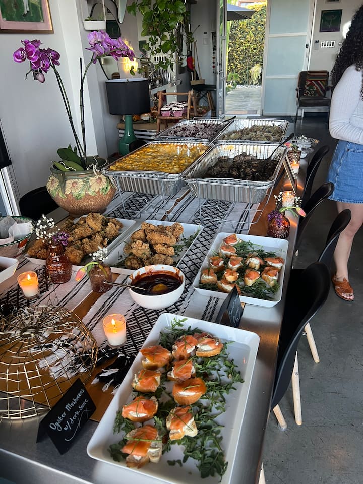 Genieße ein intimeres kulinarisches Erlebnis mit einem 5-Gänge-Menü. Begeistere deine Gäste mit der Möglichkeit, mehr über das Essen und die Menschen zu erfahren, die es zubereiten. Das Abendessen umfasst: SUPPE/SALAT/VORSPEISE/HAUPTGANG/DESSERT. ALLES INDIVIDUELL ANPASSBAR.