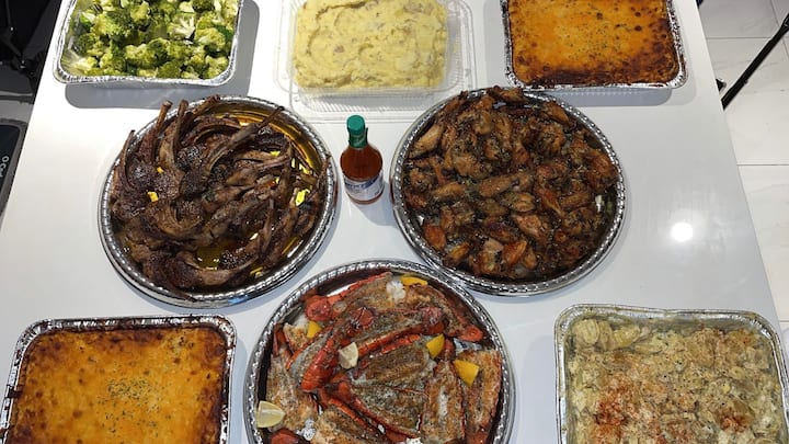 Genieße ein Abendessen für 8 bis 10 Personen mit 3 Hauptgerichten, 4 Beilagen und 1 Dessert.