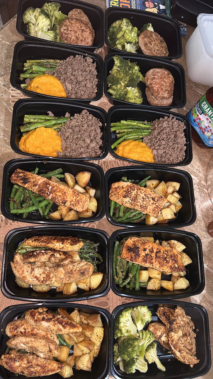 Dieses Abend- oder Mittagessen enthält 1 Protein und 2 Beilagen und wird heiß und fertig geliefert.
